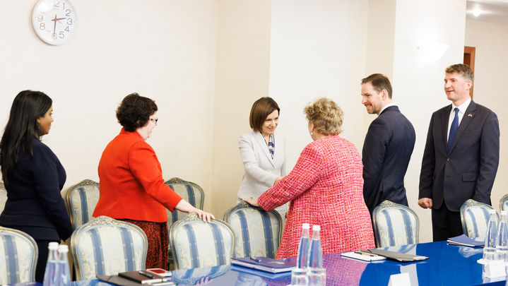 Președinta Republicii Moldova, Maia Sandu, a avut astăzi o întrevedere cu o delegație a Comisiei pentru Afaceri Externe a Parlamentului Regatului Unit al Marii Britanii și Irlandei de Nord, aflată într-o vizită oficială la Chișinău. Delegația a fost condusă de Emily Thornberry, președinta Comisiei, și a inclus deputații Alex Ballinger, Uma Kumaran și Edward Morello.