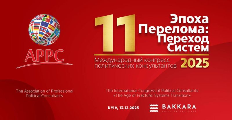 Cel de-al 11-lea Congres Internațional al Consultanților Politici Profesioniști, intitulat „Epoca Rupturii: Tranziția Sistemelor”, se va desfășura la Kiev pe 13 decembrie 2025, reunind experți din mai multe țări pentru a analiza dinamica schimbărilor politice și a comportamentului electoral.